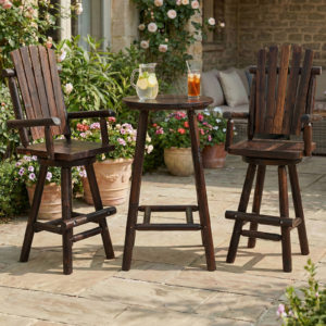 - 【360° Swivel High Bar Chairs】Experience the perfect balance of heavy-duty craftsmanship and silky-smooth 360° swivel. Effortlessly rotate to chat, dine, or toast with friends while staying stable and wobble-free. More than functional, this adirondack bar stool features a bold silhouette with a high slat back and sturdy round-log armrests, adding natural charm to your space. This seamless fusion of robust construction and smooth rotation creates a warm, inviting atmosphere for every gathering.