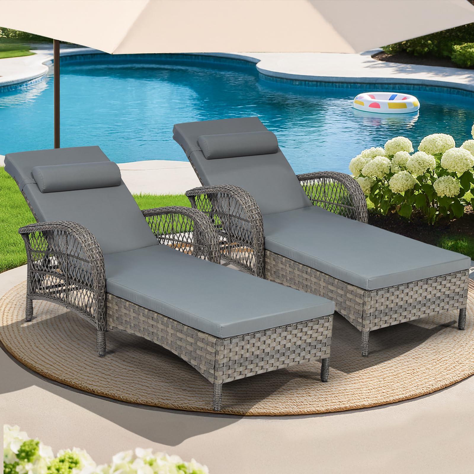- 【2 Seating Experiences & Adjustable Pillow】The PE rattan chaise lounge is padded with 2.5″ thick cushion, bringing optimal softness and comfort. The Non-slip pillowcase and straps keep the cushion from slipping due to your movements. Without the cushion, the soft and breathable rattan seat remains comfortable and cool even with prolonged sitting. The cushion covers are removable & washable. The removable pillow of the poolside lounger chair will ensure that your head and neck are well supported.