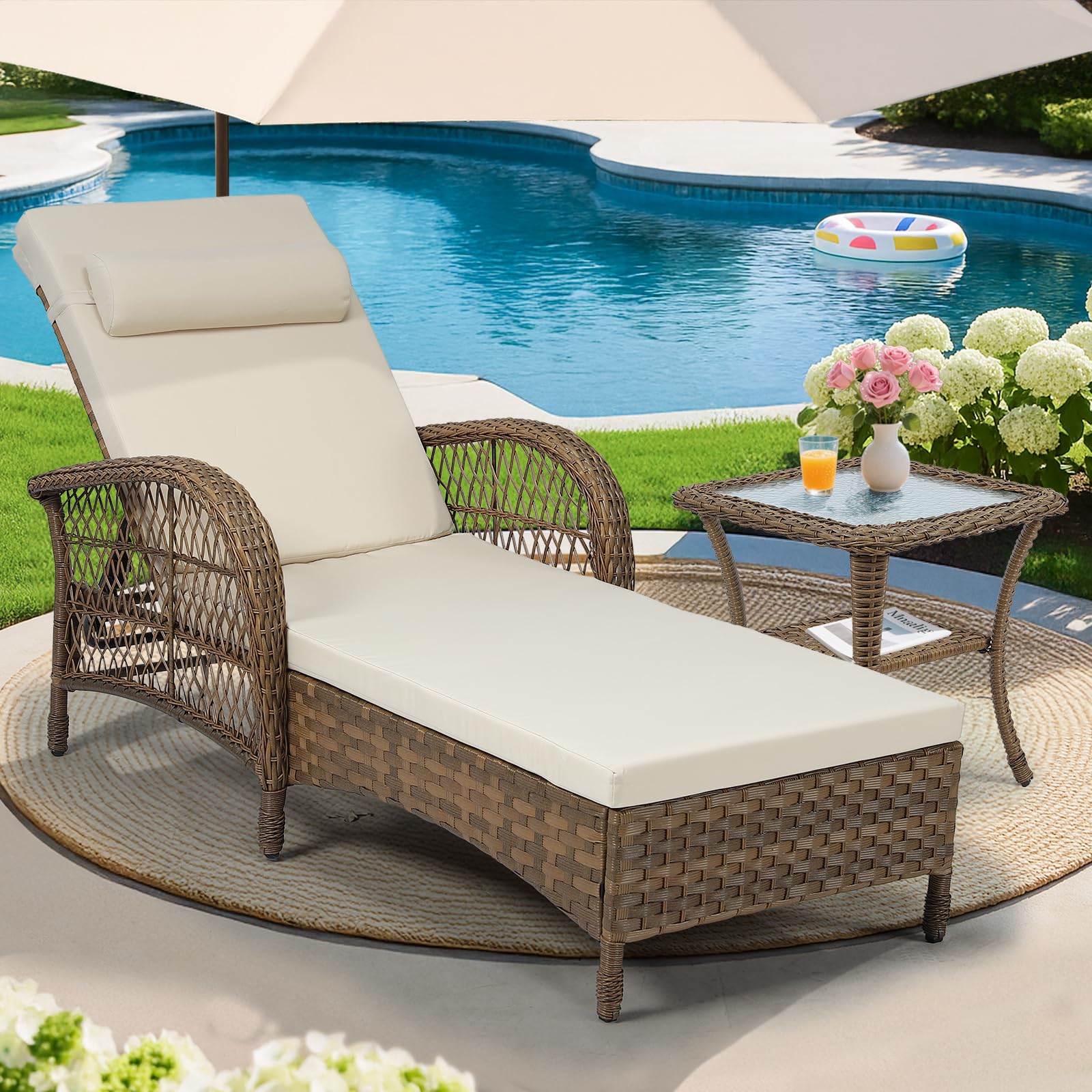- 【Lightweight & Easy Assembly】Weighing only 31.6 lbs, this wicker chaise lounge is easy to move whenever you want to change its position, perfect for daily relaxation or entertaining guests at outdoor gatherings. Unlike typical loungers with complicated assembly, our installation only requires 3 simple steps—quickly and effortlessly, comes with all necessary parts. Simply set up the patio chaise lounge with cushion with clear instructions; Its minimalist design complements various decor styles.