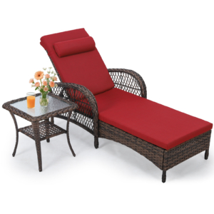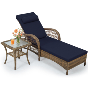 - 【Fade-Resistant & Adjustable Comfort】Our patio chaise chair comes with 2.5″ soft cushions, which features premium yarn-dyed fabric that maintains its vibrant colors season after season, offers lasting companion throughout the year. The cushions use a set of fixing ties for easy attachment and removal. Equipped with a padded head pillow, it keeps your neck perfectly supported, the adjustable feature allows the wicker lounge chairs to provide the most accurate comfort for users of all heights.